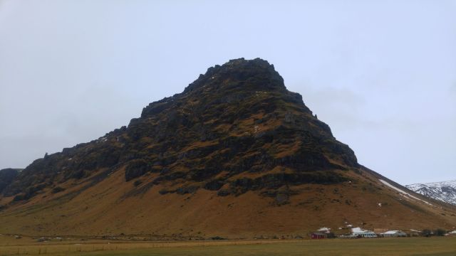 Towards the coast, the land becomes more dramatic, big scree-sided crags rising from the flat plain. It was hard to tell if Eyjafjallajökull was quietly fuming or just shrouded in low cloud, but we flipped it off vengefully anyway.