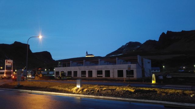 In the long pre-dawn of the next morning, Þing presented a weird science-fiction landscape: black soil, yellow plants, lakes of ice; the architecture entirely square-cornered ultra-modernist cubes lit up erratically by Christmas decorations. But it’s a clean, prosperous science fiction world, rather than a bleak retro used future. There is something weirdly Planned about the whole landscape here. The houses are almost all detached, which in such a cold environment would be ludicrously wasteful were it not for their unlimited geothermal heating (and I bet they insulate well, too).