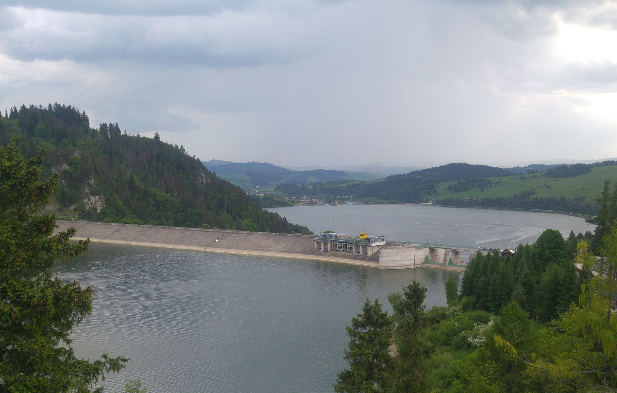 Onwards to a castle – named Dunajec for the river it commands – Hungarian-built and mainly Hungarian-owned up until the post-WW1 treaty of Trianon. It sits across the artificial lake of the dammed Dunajec from the ruined Polish Czorsztyn Castle, and pleasure boats pootled across said lake as we explored the castle’s limited but charming contents and fantastic views. Another rainstorm arrived as we had a look at the dam, big fat slow raindrops that burst heavily around us. It was time to move on. Through the rain-streaked windows, the now-lakeside town of Frydman cowered behind a massive levee, like latter-day city walls.