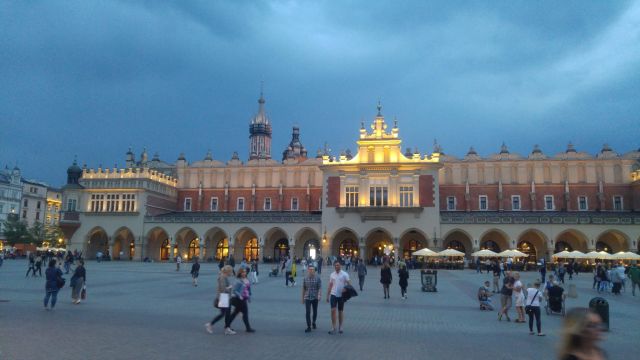 An old town, but a young clientele – hardly anyone out and about looked under 30. After much wrangling we finally found a place doing kasha based meals (think couscous but with buckwheat groats). Across from us was a huge hollow bronze head; behind it, the odd piebald clock tower, patchy with brick and marble in a way that defied obvious explanation. The glorious Polish baroque cloth-hall stands in the middle of the square. Behind it, the Basilica of St Mary’s lopsided towers are crowded with multifarious mini-spires. In the market below, we found that while Krakow’s proper crest is three towers, the thing on all the fridge magnets is a dragon.