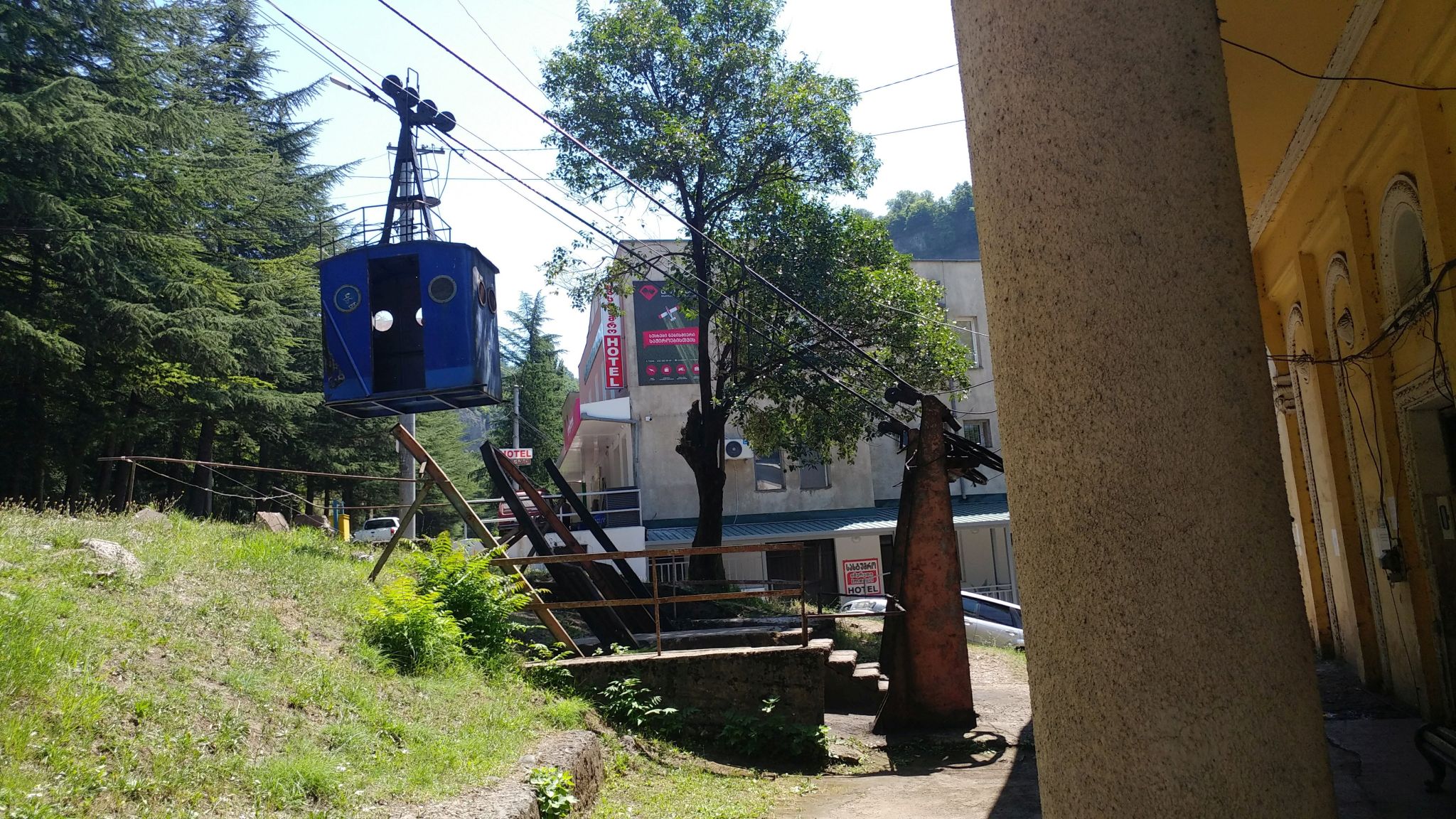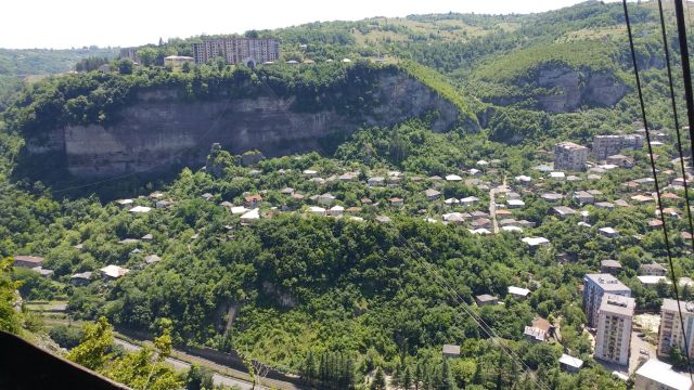 By pure chance, we’d arrived on June 30, the day of the martyrdom of Saint Shalva of Akhaltsikhe,* now commemorated every year by a big town music festival – Georgian-flag bunting was going up, drinks being unpacked, sound systems unlimbered. We wandered back down the hill at dusk, and chilled on the terrace outside the guesthouse where the landlord, in reasonable German, offered us some of his homemade wine and, through his daughter, helped us plan the next leg to Batumi. It emerged that something that looked entirely logical on the map – the direct road through the mountains from Akhaltsikhe to Batumi, which was most of the reason we’d even ended up there – was too poor quality for anyone to want to drive us there. Given the quality of road Georgians happily would deal with, we were both slightly frightened of what that might look like. So getting to the Black Sea would mean looping all the way back to Kutaisi, at considerably greater time and expense than expected. Ho hum.