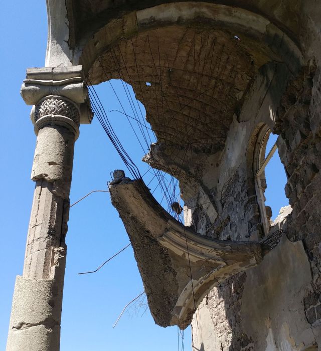 The drive was almost half the width of the country – two hundred whole kilometres! – and followed the banks of the great butternut-coloured Kura River up through yellow plains and green dales into the dry ochre highlands of the south-west. The combination of creaky marshrutka, mountain switchbacks and roads that hadn’t seen a great deal of love since Brezhnev made the ride slightly hair-raising (though not as bad as Kalamata to Mystras), and only halfway through did I notice one of our fellow travellers had a bird in a very small box on her lap. We arrived early in the afternoon, by an anonymous obelisk to the dead of 1941-45, and made our way to our guesthouse. Akhaltsikhe is a charismatic town of no great size, nestled in a confluence of valleys; its name, one of those gorgeous, quintessentially Georgian-sounding words, means “New castle.”