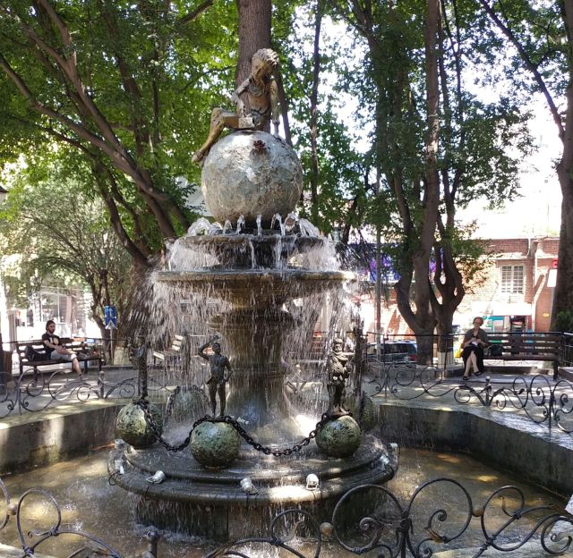 The huge Rabati castle is a monument to a local military history so long, bloody and tangled I don’t have the time or confidence to attempt to reproduce it; the present form changed hands repeatedly between the local Georgians, Tamerlane’s Timurids and the warring Islamic gunpowder-empires that succeded them, notably the Persian Safavids and the Ottoman Turks. A recent, clearly very expensive, reconstruction has decided to return it to a specifically Ottoman splendour of carved wooden shutters, shady colonnades and tinkling fountains, all under prominent Georgian flags.