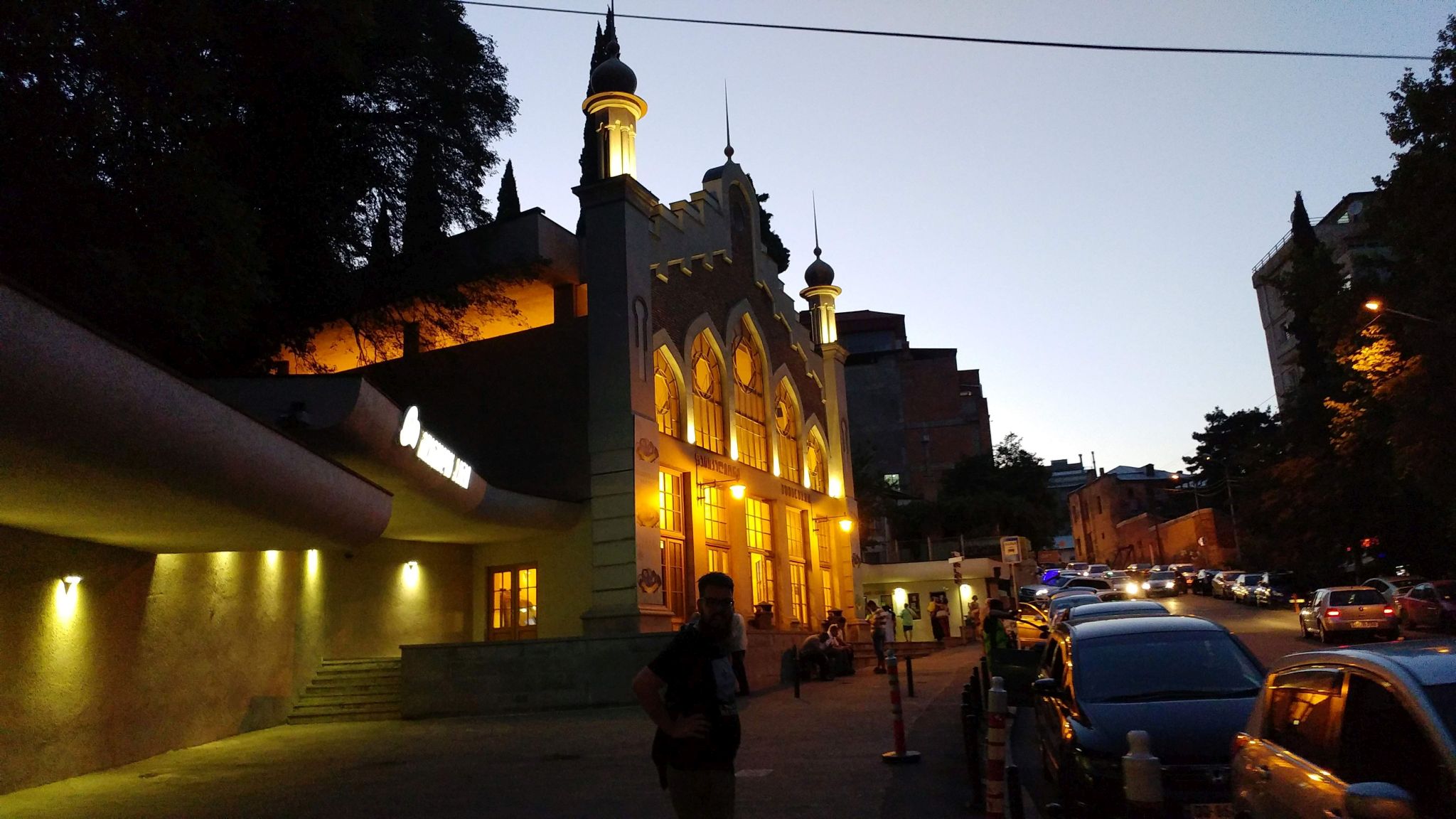 Arpi had a stomach complaint and retired to bed early, but the daughter of the house and a group of her school friends showed up, ready to go up to the castle for the festival. They all practiced their English on me – it’s very striking how the older generation speak Russian as a second language and the younger ones English – and I showed them some British coins, explaining the queen, the lion, the portcullis, the flowers. Our hosts saw nothing untoward about letting a group of preteen girls wander off with a large foreigner, so they took me up into the towers of Rabati (unlit, poorly paved, wobbly ladders, general Ukrainian-tier health and safety but with scorpions – all genuinely great fun) and we watched the open-air concert** unfold in Georgian, Russian and accented English, the crowds of happy Georgian teenagers in the thousand-year-old fortress feeling at once incongruous and perfectly appropriate.