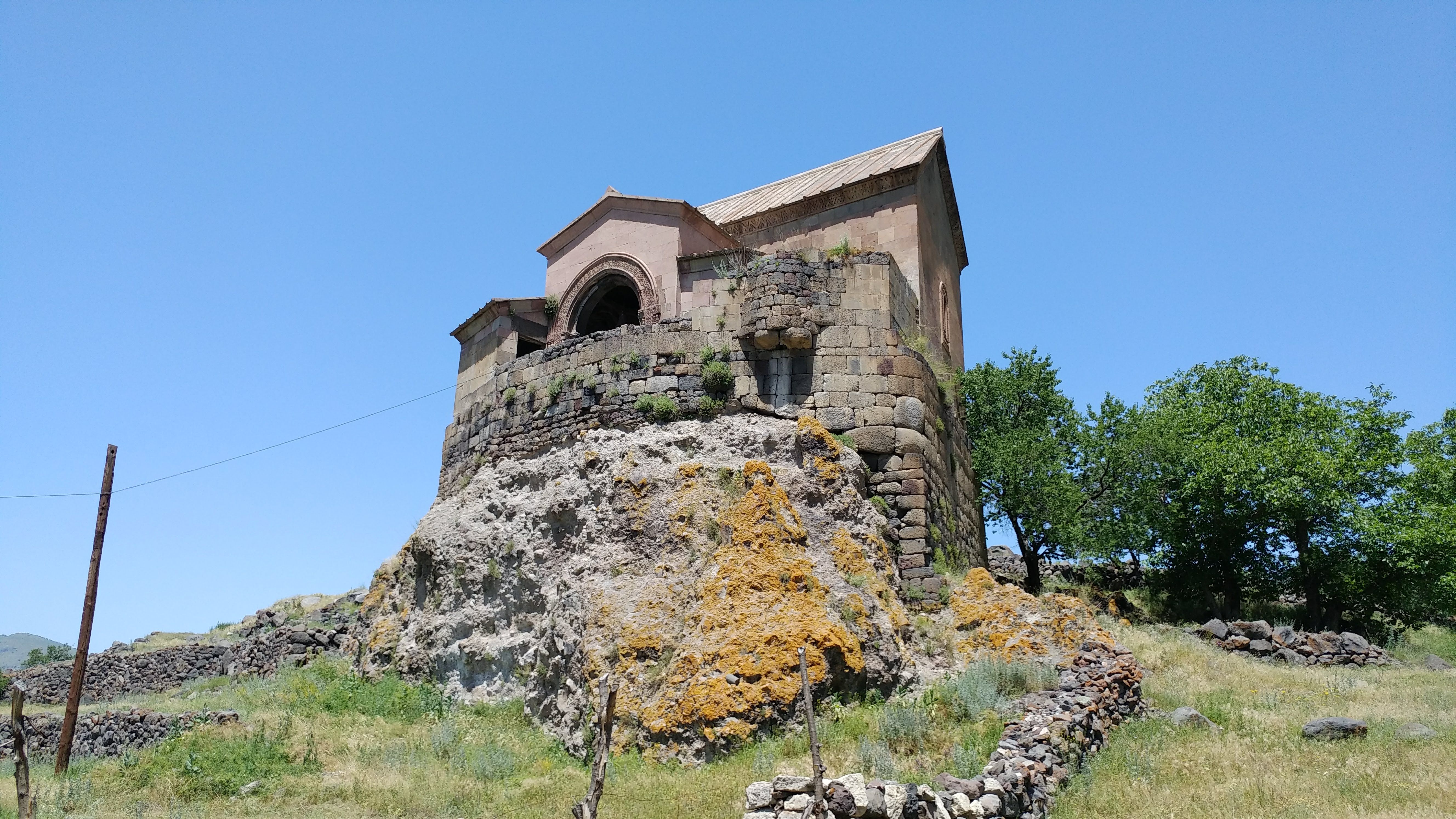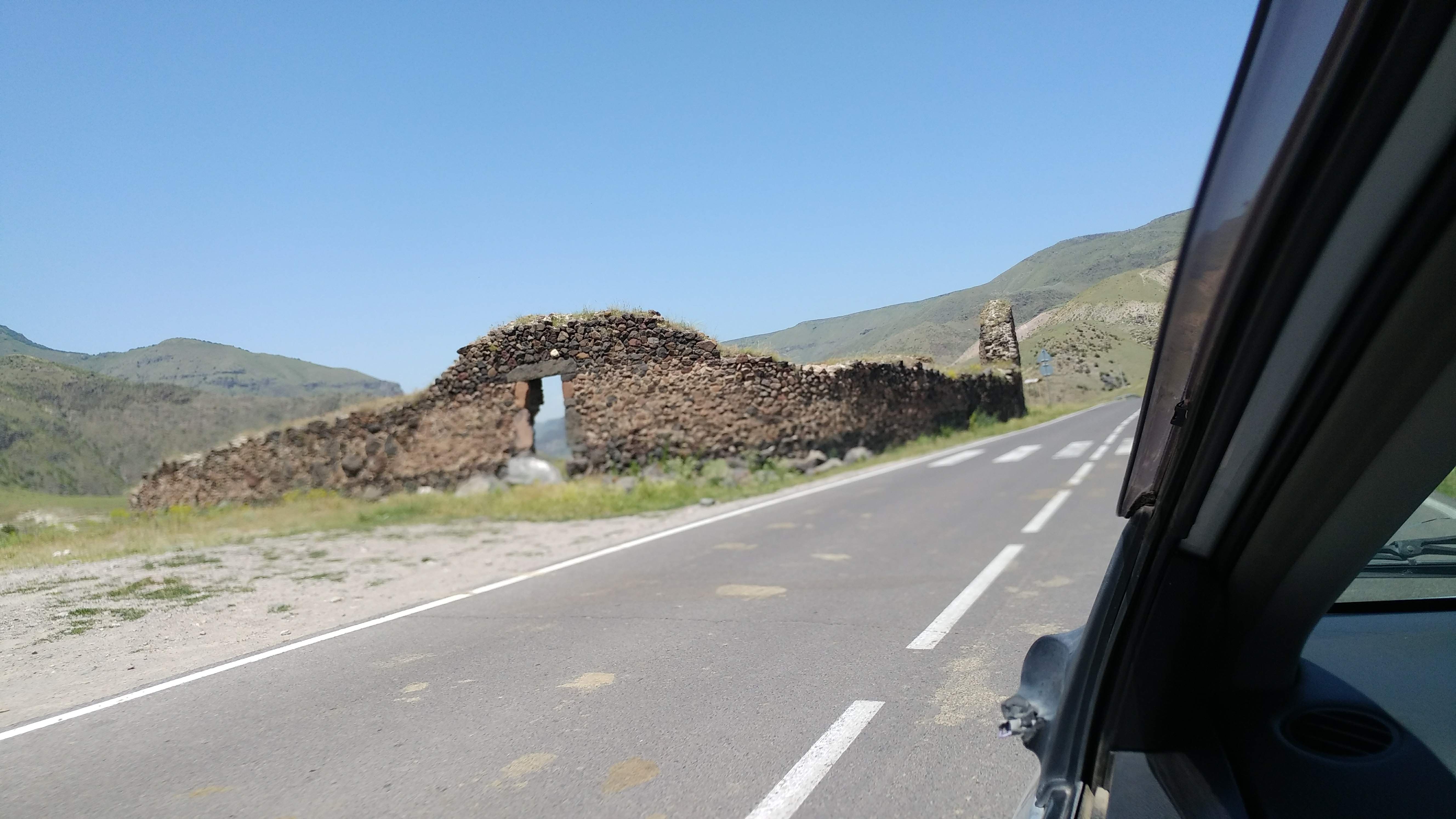 Southeast of Akhaltsikhe, on the way to the Turkish border, the Kura has eaten deep into the stone of the Caucasus mountains.* There are flat valley floors here, rectangles of green and yellow like elongated chequerboards, but it’s mostly a rugged landscape of high hills and scree. Huge building works were going on near the road, vast concrete pilings and silver pipes reaching down from mountaintops; we discussed what was going on, eventually reached a shared understanding of pumped storage. Bright sun beat down; the constant hiss of the crickets mixed with the rush of the airstream, changing in tone as we jinked around crags and big holes in the road. There were more cows about than cars, and it was difficult to get a sense of how busy this place must have been in its heyday. But the relics of a past Georgia were everywhere: a beacon-tower from the time of Tamar; a church one thousand years old; a fort that had once been sacked by Alexander.