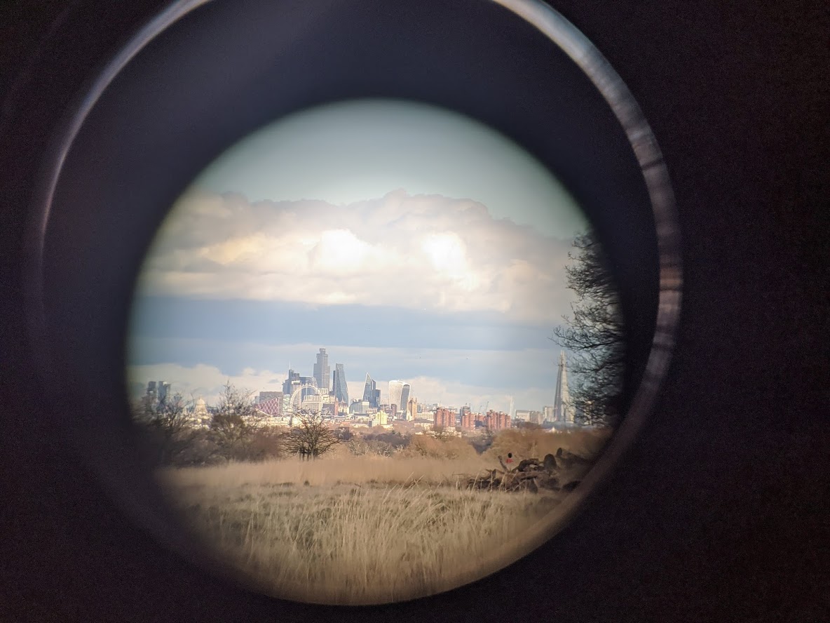 I met Tom and Bex and we proceeded to the north side of the park, finding a map covered in wonderfully macabre old names – Gibbet Hill, Killcat Corner, any number of Copses better read with an extra R. It was a dark, windy day, with a stiff westerly swishing in the long yellow grass and the knobby grey trees, and hurrying dark clouds off towards the city centre. We came to a bunker-esque structure, plausibly an air raid shelter but small, overengineered and a bit in the middle of nowhere. A mystery.