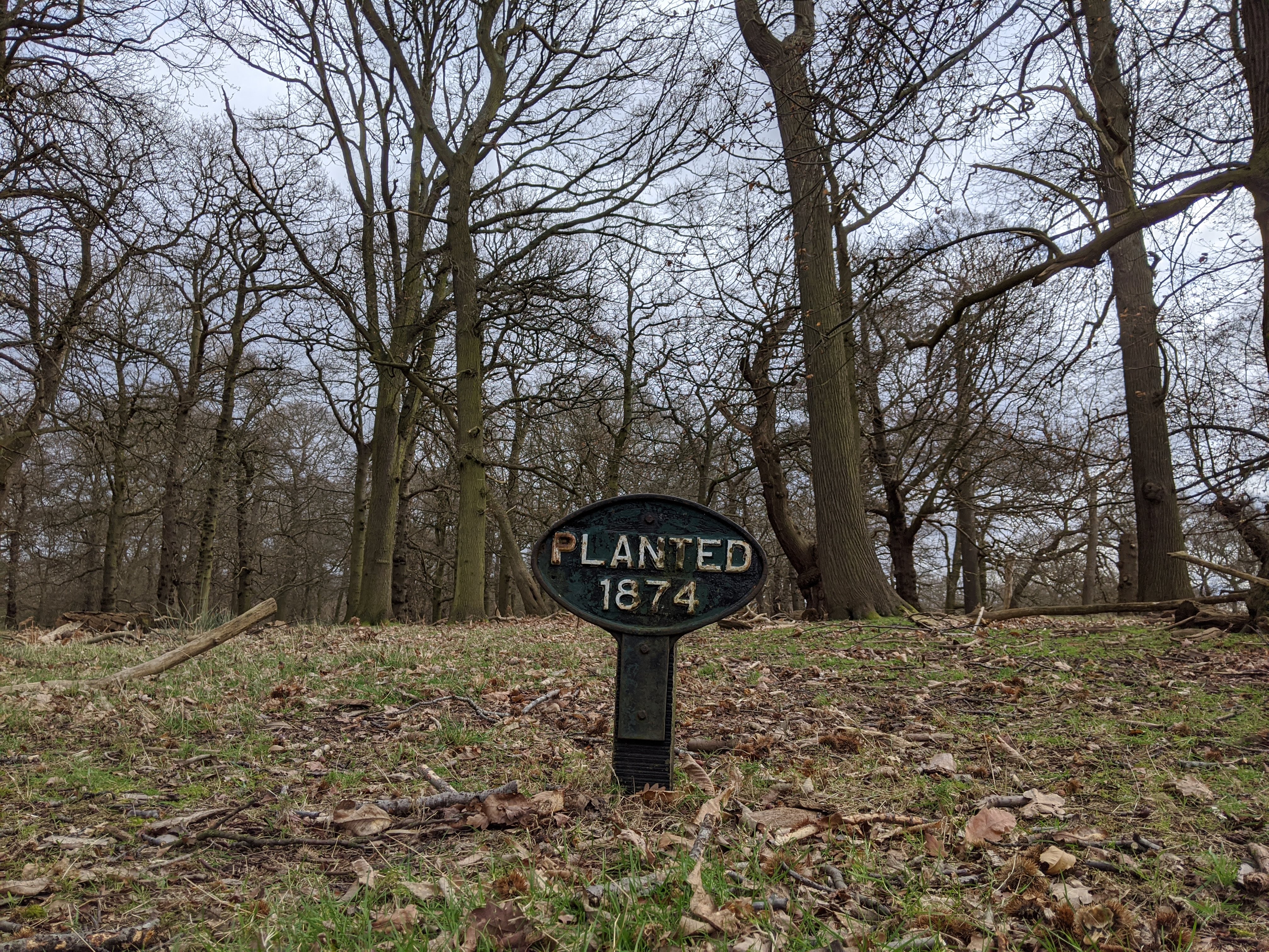 As we advanced into the ancient (and less-ancient, some trees tagged with Victorian plaques) forest, Tom discussed some theories in a book he’d read recently* about how trees communicate with one another (on most of which I’m not wholly convinced, but not wholly unconvinced either.) And, almost as a side note, how almost everything seems to hurt or kill trees, seen on a long enough timescale, and that they show symptoms which can be reasonably interpreted as suffering. This, in combination with a late-winter deadness, gave a strong, unexpected sense of being surrounded by death, an uncomfortable graveyard air that had never occurred to me before (and I didn’t help by bringing up the lignin theory I’d recently learned about, with its strange imagery of immense piles of dead trees, unable to decay.**) But then again, death is interesting: here, a bark-stripped body striated with wood grain, streamlining around knots and branches like a diagram depicting laminar flow; there a huge, half-decayed shipwreck of dead wood, riddled with beetle-holes. A few green shoots were coming in around the spiky chestnut litter; noisy green parakeets and small, glossy jackdaws were everywhere, and we talked about colonies of ants who formed in acorns, or twigs.