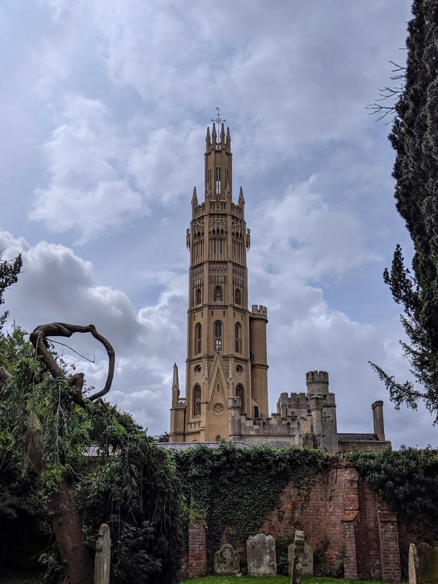 The tower is best viewed from the nearby parish church (a very nice example, and one which felt well loved and relevant to its community.) A churchgoer told us how the current owners did the tower up with lots of Heritage money (we looked up the interiors; they’re hideous) and then stopped letting people in. It’s now on sale again for three times the asking price. Yuck.