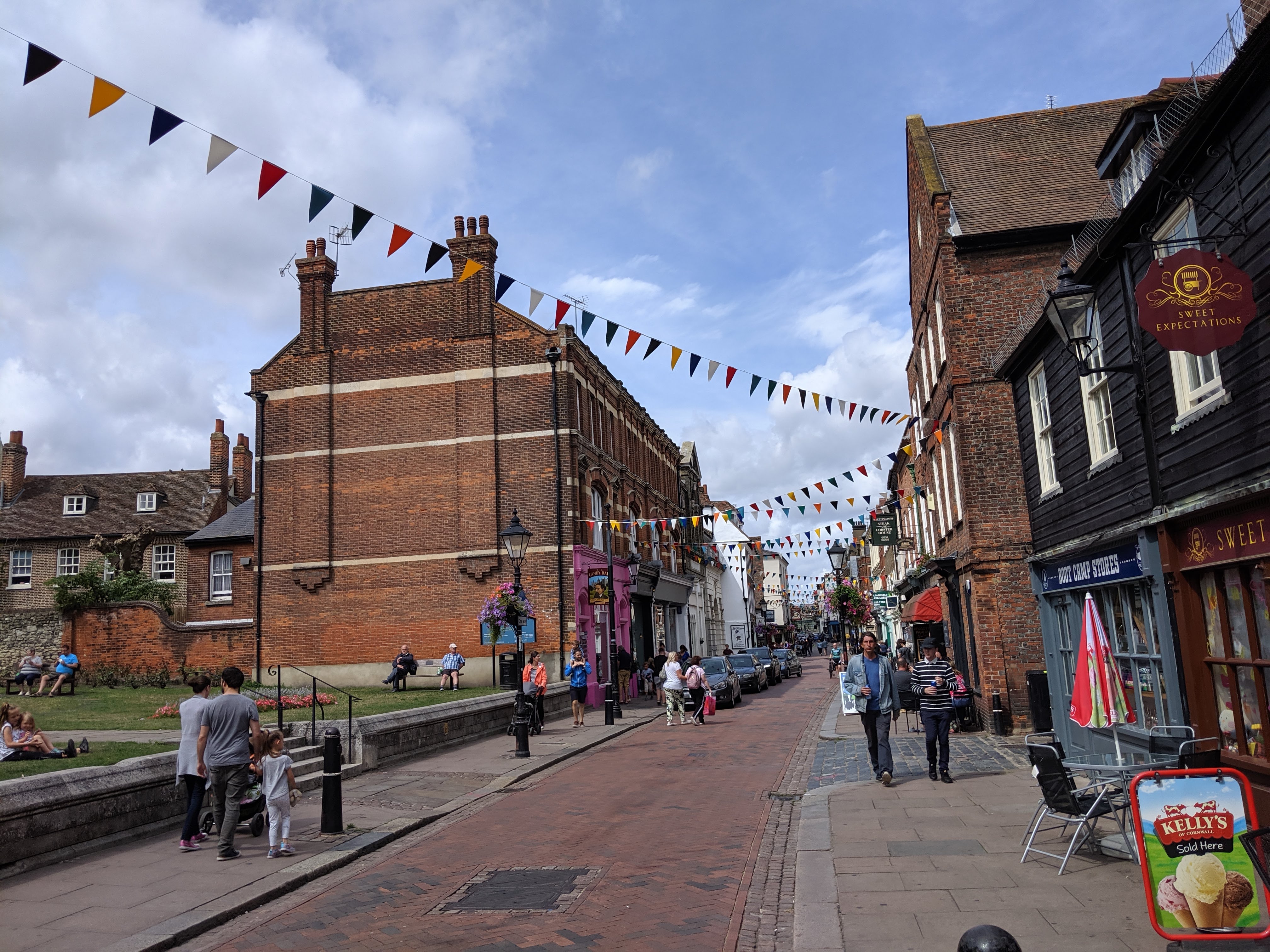 The High Street was very cheerful and active on a bright sunny day; we had fish and chips, and Charlie bought a mosasaur tooth. We took a turn around the excellent Guildhall museum – a perfect little town museum, made with absolute love and interest in the town’s considerable historical pedigree, with just enough budget to make it really work (a replica deck of a prison hulk padded out with mirrors was a high point.)