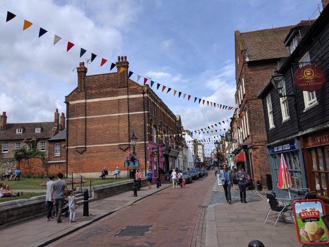 I have had the good fortune to see a great many cathedrals, and this was an excellent example of the genre. There was a great mural with a very Eastern Orthodox feeling to the art (which made perfect sense when we saw in an info board that named the artist as Sergei Fyodorov – who had hidden a little picture of himself peeking from the side of the corbel, in true medieval style); memorials to men of Rochester fighting and dying in every corner of the world; an atmospheric crypt, glorious ceramic tiles. (We didn’t actually fancy the mini golf, so skipped it.)
