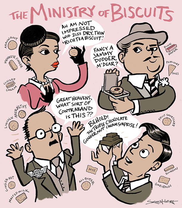 A few years ago, I had the great pleasure of attending several showings of Philip Reeve and Brian Mitchell’s “The Ministry of Biscuits“, a darkly compelling tale of state-controlled nationalised industries gone mad (ok not really) starring Amy Sutton, Brian M, Murray Simon, and the late, great David Mounfield. (You can read a writeup by the splendid Sarah McIntyre here.)