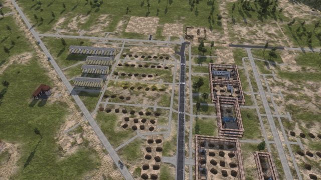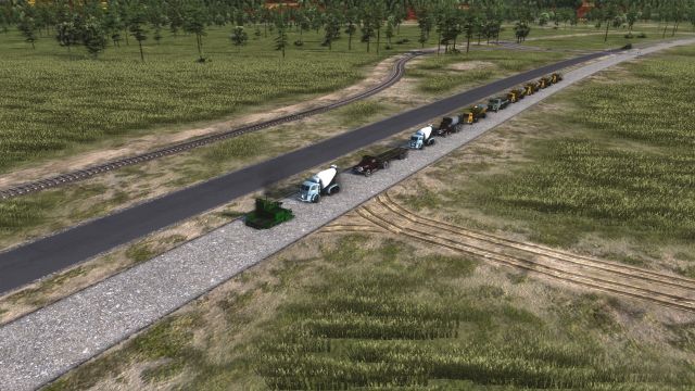 I’ve finished a railhead to the border, so small trains are importing bricks, boards and concrete panels, freeing up more lorries for construction.