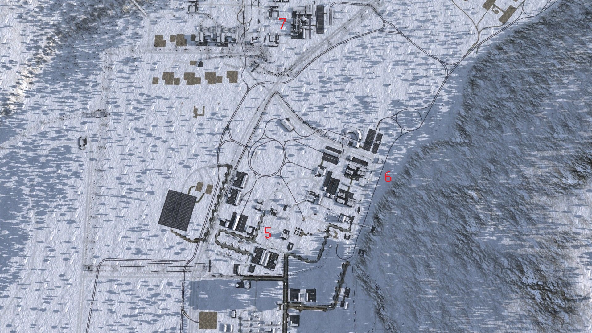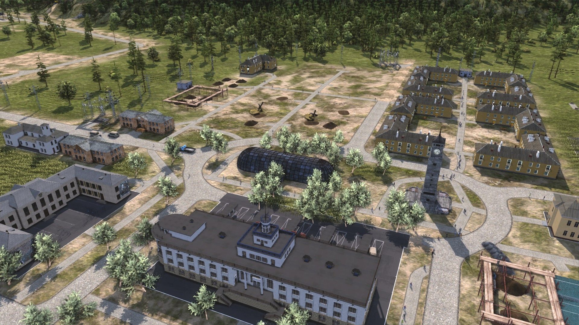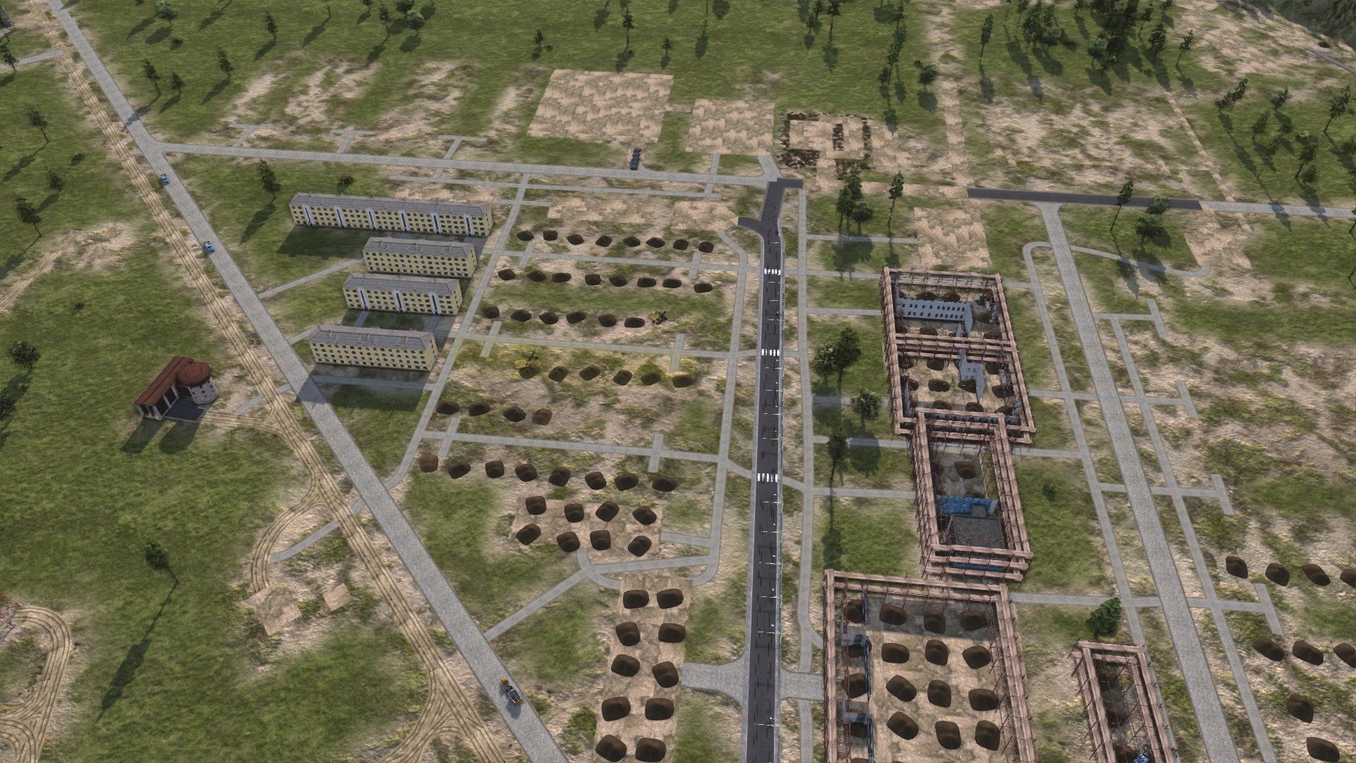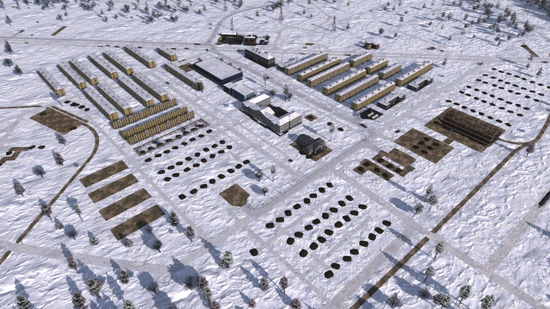 I got Belogorsk about 2/3 finished by the snows of late 1948, and focused on the steelworks (closer to the construction offices) through winter.