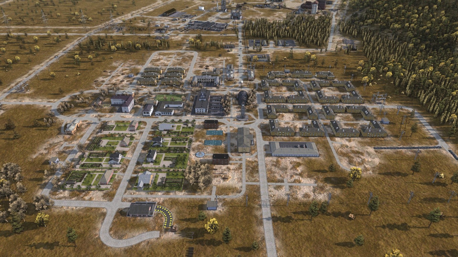 Here is Alexandrov, my first town. Note that everything is in walking distance of the houses, and lots of building foundations for further districts which I’ll build myself.