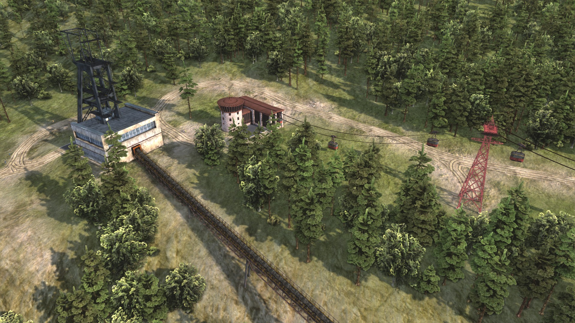 By the end of 1946 I’d built up all the construction industry and some of the vehicles necessary. 1947 was spent expanding the town and vehicle production (two road factories and a train factory total), building a railway construction office and some track, and getting up a hydroelectricity plant, some oil wells and a small fuel refinery to process and get all the bitumen (and most, but not all, of the fuel) I need. For the latter, rather than use buses, I built a cable car.