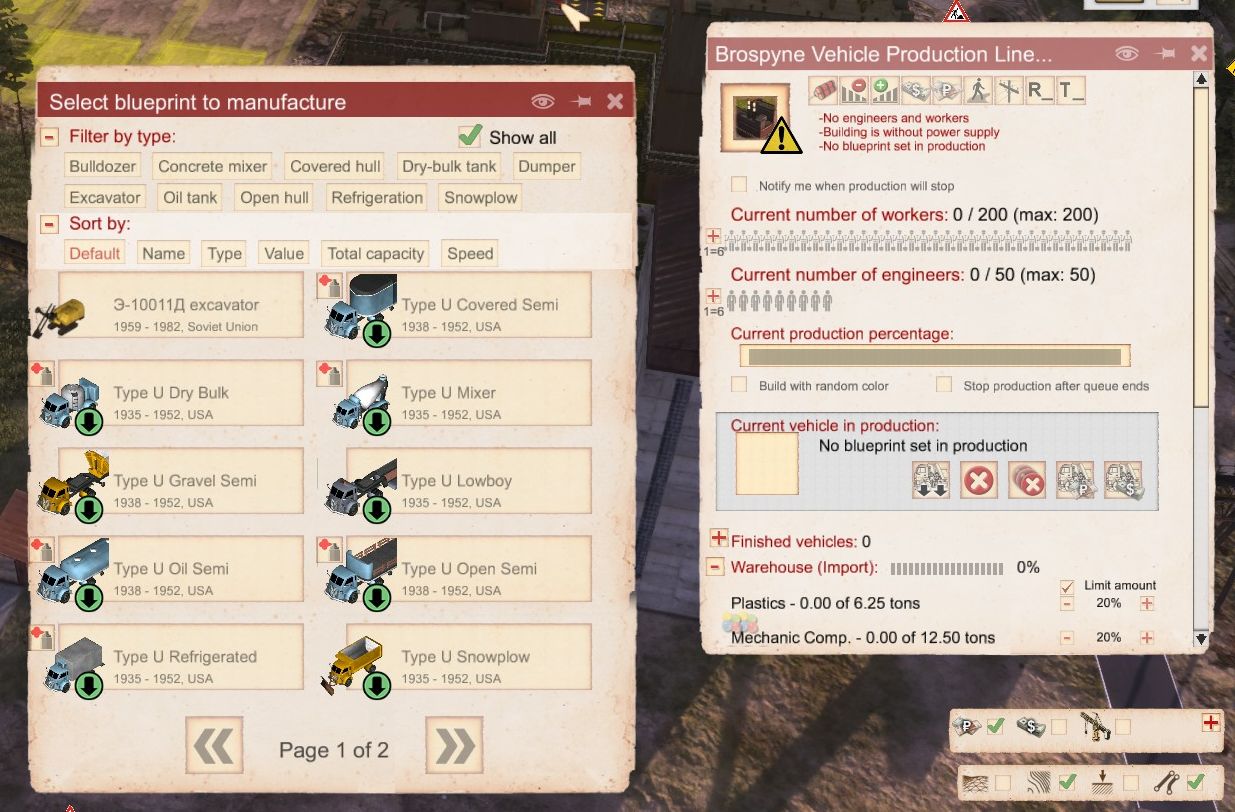 I want to build some asphalt roads, but these require rollers and asphalt pavers and there aren’t any Soviet ones available, so I need to spend more dollars. It’s not worth building these (the blueprints are very expensive), so I’m just buying a couple outright.