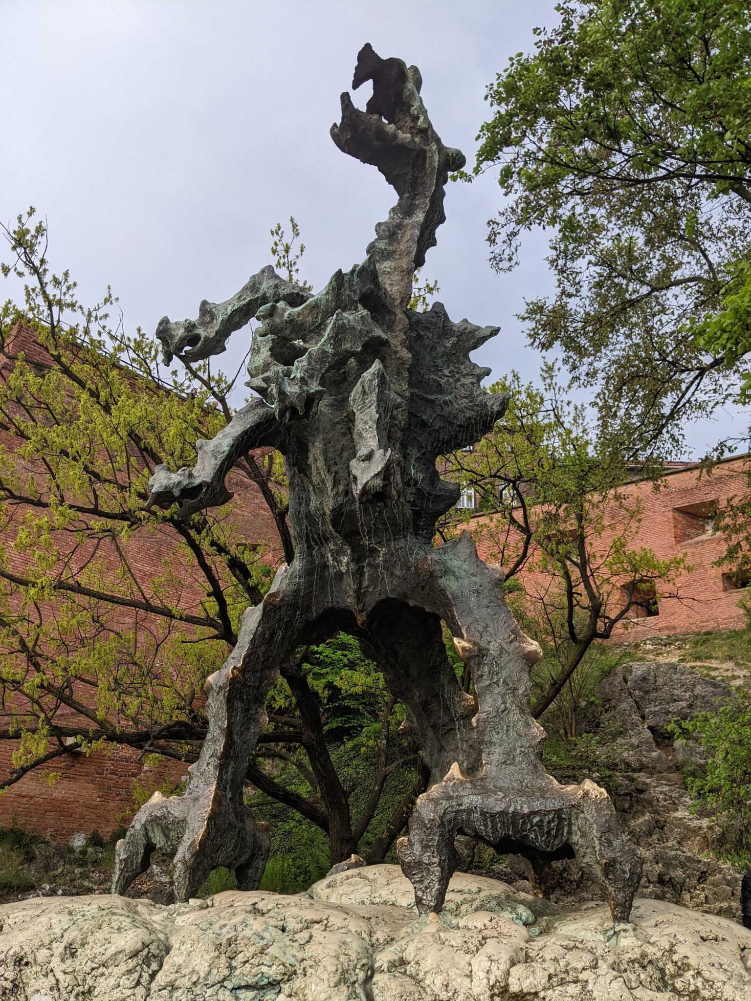 Thus fortified, we set about the city’s fortifications ourselves. Krakow upgraded its defences heavily at the dawn of the gunpowder age to a formidable set of concentric curtain walls, moats and thick-walled fighting towers mounting early artillery (quite a similar response to the Device Forts, in fact, a few decades earlier). But it was never quite rich enough (or threatened enough?) to upgrade them to full-on trace italienne at any point and so staggered on with these picturesque-but-increasingly-worthless until the early 19th century when the (then Austrian) authorities demolished most of them and made a lovely park around the Old Town. But some were saved, thus the Barbican: fantastic both in the sense of being good and in looking like it belongs in a fantasy film, a big horseshoe of red brick topped with pointy little mini-turrets and riddled with as many odd-shaped loopholes as the British tax system. A gentleman in a mauve jerkin taunted us gently from the courtyard, let us play with his swords and armour, and having fully equipped Sam proceeded to beat him up with a sword. (I had no cash so left the castle and headed for a cashpoint to get him a tip; on my return he gave me a replica 15th century coin “for being honest”.)