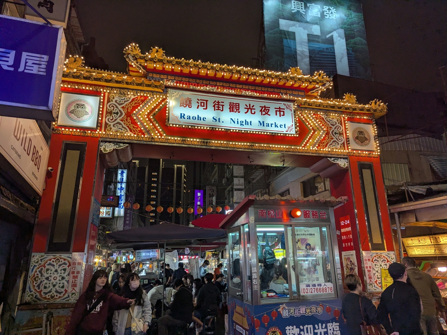 The first impression Taiwan gave was of compactness: a small amount of heavily exploited flatland, a lot of unhelpfully steep hills, and a buildable grey-zone between them full of buildings and land reshaped to accommodate each other. Layers of road and rail viaducts crossed each other; very seriously embanked rivers and mossy, steep-walled storm drains suggested everything might get very wet very quickly. The smooth, swift metro dropped us off in the Ximending district, where we found our hotel, past shopfronts crammed with computer valves and maneki-neko, and headed, jetlag-addled but famished, for the Raohe Street Night Market.