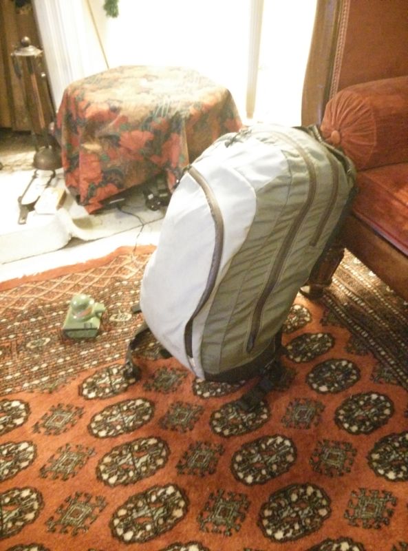 It is with great sadness that today I bid goodbye to My Backpack, faithful companion all over the world for the last six or seven years. I don’t tend to get that hung up on physical objects, but it is the best bag I’ve ever had, a perfect 32 litres of black and grubby feldgrau, with a padded central pocket for laptops, a spacious mainbay for general goods, and a little top pocket right at my shoulders for wallets, phones, keys, headphones, batteries, memory sticks, train tickets and all those other little things. It’s been with me on every one of the travelogues I’ve written; it’s probably spent more time with me than any other person or object in the last decade. Friends, phones, countries, pairs of spectacles have all gone and come, but the bag has remained, eternal.